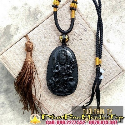 Mặt dây chuyền Bồ Tát Phổ Hiền đá thạch anh khói